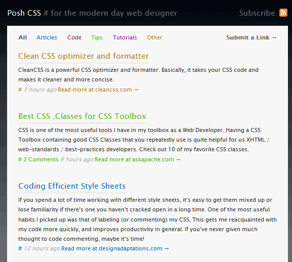 Posh CSS is the brainchild of Sam Brown from Massive Blue who was looking for one central place to read about the latest and greatest techniques, tips and tutorials in the Cascading Style Sheet world. None existed and thus, Posh CSS was born.